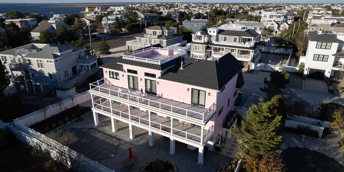 Bold choice of color on this custom Love Ladies home. This home is 4,055 sq ft of luxury with 5-bedrooms, 4-baths and 2-half baths and a roof deck that does not disappoint with views of the beach and beyond