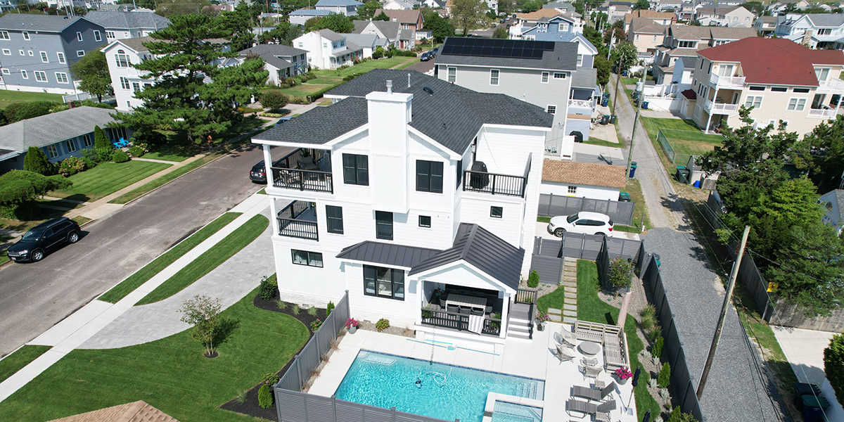 Back to Custom Shore HomesSleek modern vibe with this Brigantine 4,052 sq ft, 3-Story custom with outdoor living seemlessly integrates with indoor living. This home includes 6-bedrooms, 5-full baths and 2-1/2 baths